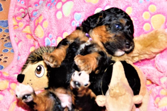 Have an amazing home built whelping and play/education area for our Mom’s and puppies. We start the crate training process for you. Introduce stairs and plenty of socialization. We screen our breeding dogs not only for health but temperament and ability to learn. We now have 4 breeding females and 1 male that reside with us so can spend lots of time with our loved ones. We educate our potential buyers on the full grooming and behaviors to expect in our breed. We do not abandon you once you receive a pup. We become a family. We offer a 1-year health guarantee.