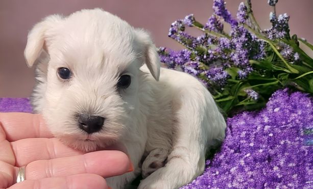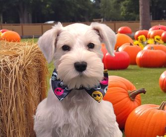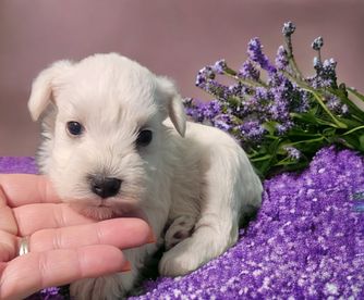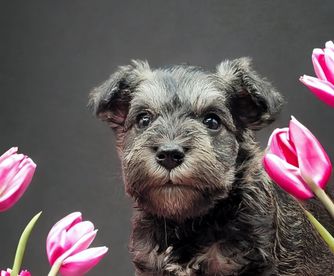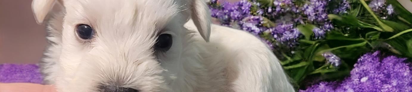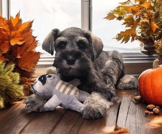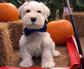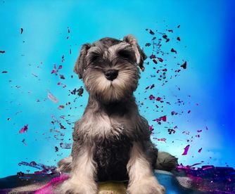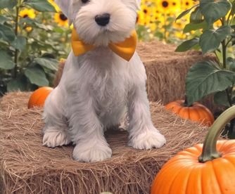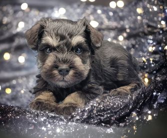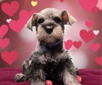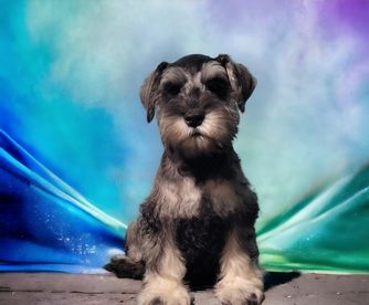 Our puppies include white, salt and pepper, black and silver, and black. Colors will vary depending on the parent dogs.