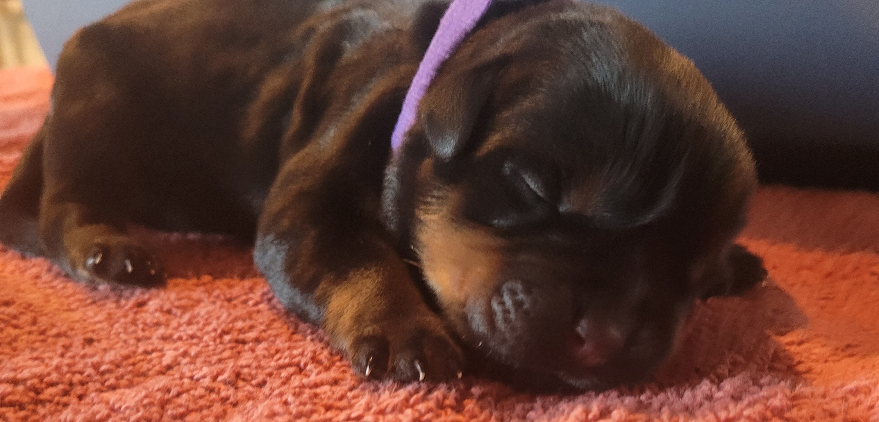 Our puppies are black and mahogany. Colors will vary depending on the parent dogs.