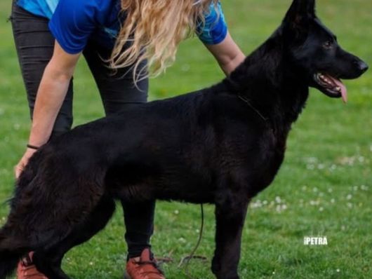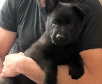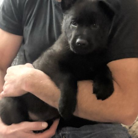 Abi is a beautiful, solid black female. She is of nice size, and has a wonderful disposition. She is currently earning her titles in Schutzhund with high scores in her IGP1. She is social and very active. Great food and toy drives, pups will be very talented and able to train and compete in many different sports!