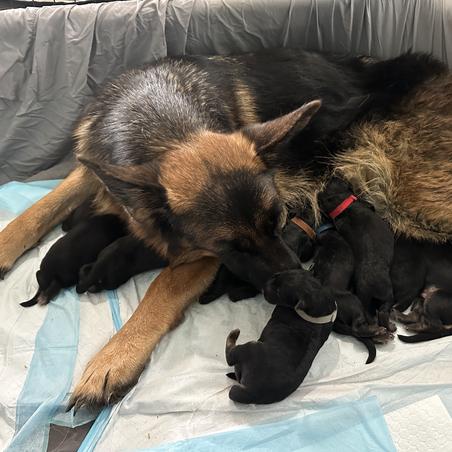 My father bred our childhood German Shepherd when I was about 10 years old and I knew then that I would raise German Shepherds. I waited to get my current breeding pair titled, into showing and health tested and of age. My first litter of hopefully more to come over the years.