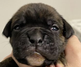 Our puppies include fawn and brindle. Colors will vary depending on the parent dogs.