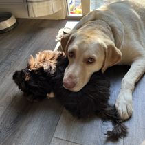 Gelato, now known as Ruby, has been such a blessing! Dominique was great to work with, quick to respond, and provided a wonderful gift bag to get us started with our new puppy. Ruby has joined our family seamlessly and quickly made a new best friend. She's lively, spunky, smart as a whip, and fills the void better than I could have hoped. I couldn't be happier. Thank you so much, Dominique!