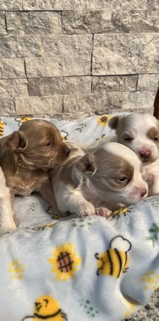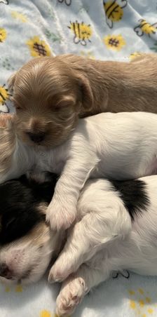 Momma Birdie is a go getter loves to take a walk anywhere. At night loves to stay up late with me and my husband to watch a late movie. And she keeps an eye on you. The best momma with her pups is very loving and is cute as ever 9 lbs. We will work with you on moving the deposit to the next litter if something happens unforeseen with the litter puppy you cannot take at time of pickup. Or we can refund your deposit. But please be a serious buyer! We take the time to talk with all are inquiries.”
