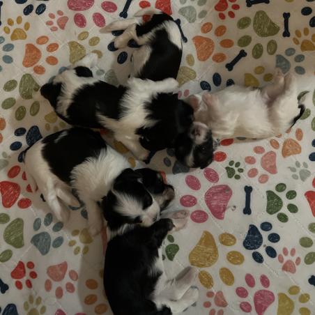 Our puppies include black and white, white, cream, red, and red sable. Colors will vary depending on the parent dogs.