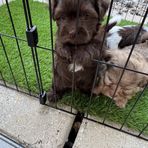 We give our pups lots of love. They are kept indoors entirely until 6 weeks, when we gradually introduce them to the outside in a small pen on artificial grass. We don’t overbreed and have no plans to do so. We will travel at reasonable rates to deliver the pups!
