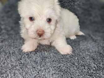 Havanese puppies include white, chocolate, and black. Colors will vary depending on the parent dogs.