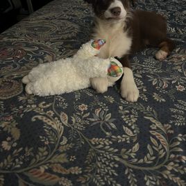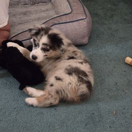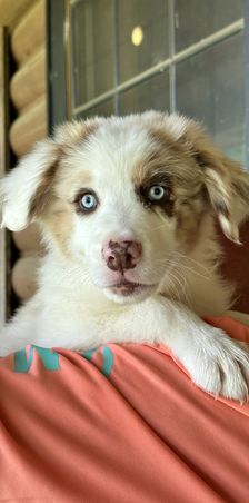 Best experience ever!! I contacted Shelie about the ultimate surprise for my husband. An Australian Shepherd puppy for our 27th anniversary. She was so great to work with about everything! And was more than willing to talk with me to help keep the secret. She sent pictures and updates. Texted with answers to any questions I had. I was kept fully up to date on everything. We were both of the same mind that the puppy's health and well being were paramount. Transport was arranged and our puppy arrived in great health and spirit! I was able to give my husband a wonderful companion and surprise. He and our new little man Jasper bonded immediately. They took one look at each other and best buds were born! Since Jasper (formally known as Chris Stapleton) has come to be part of our family, we have continuously been entertained by his sweet, goofy puppy nature. He has become a full member of our family in such a short amount of time. He is so smart and watches and learns so quickly. I cannot recommend Shelie and Haven Farms enough. I truly feel that they aren't just providing dogs, but are deeply invested in helping to expand your family. And our family will forever be thankful to theirs.