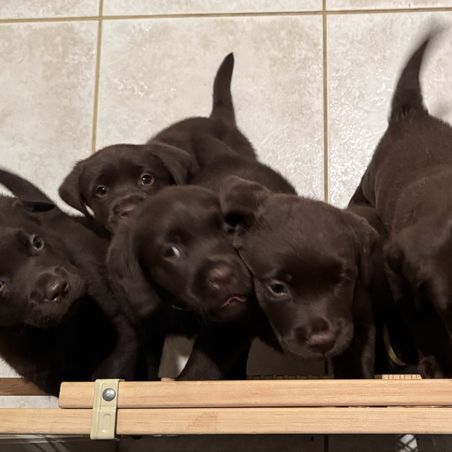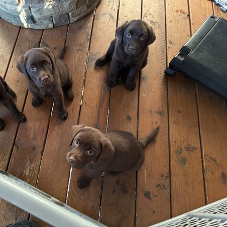 I'm Glen F., the breeder behind Havenwood Labradors located in Bella Vista, AR. Chocolate English Labrador puppies for family wanting a pet. Koda is our dame who was born on April 4, 2023. This is her first litter. The sire, Stoney, is from Mistywoods Labradors, in south central Missouri. Both Dam and Sire have AKC Registration.