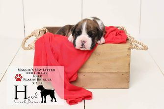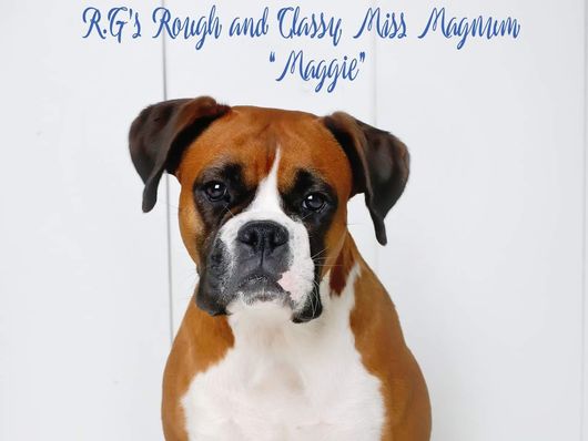 R.G's Rough and Classy Miss Magnum is a female Unknown. Carefully selected as a great representative of her breed, Allyson decided to make her part of their program. Allyson has passed Good Dog’s screening process, which involved a review of their breeding practices, environment, and the mental and physical health of their dogs.