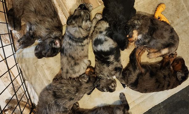 Our puppies include tri-color, merle, and black. Colors will vary depending on the parent dogs.