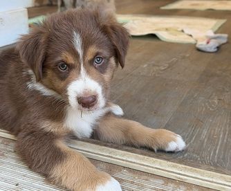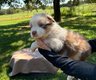 Our puppies include red merle, blue merle, black tri-color, and red tri-color. Colors will vary depending on the parent dogs.
