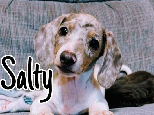 Salty is a female Dachshund. Carefully selected as a great representative of her breed, Tess decided to make her part of their program. Tess has passed Good Dog’s screening process, which involved a review of their breeding practices, environment, and the mental and physical health of their dogs.
