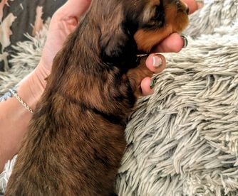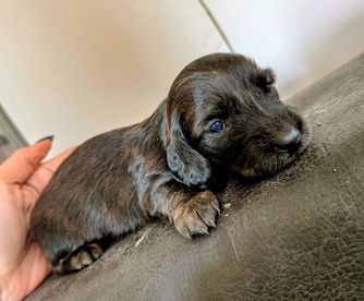 I'm Tess O., the breeder behind HayDay Dachshunds located in Harper, OR. All of our pups will leave with all vaccines, health testing, PRA testing, & vetting. I make sure they are good with people of all ages and appearances, and other animals, including birds and cats. Pups will be microchipped before leaving as well, at no additional cost.