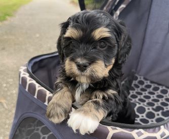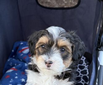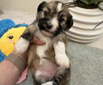 Margot is a black/ silver sable Havanese with white markings. She is AKC registered with numerous champions and grand champions in her pedigree. Her easy going, calm, laidback demeanor is one of the reasons why she is in my breeding program. I own both of her parents who have produced gorgeous offspring in previous years. She loves watching tv and being held. She is absolutely precious