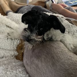Great experience with HB Schnoodle. Love our new baby and he loves us and his new brothers. Plays with other toy schnauzer and our cat. They all play chase and wrestle. A joy to watch. Thx Jason! Beautiful pup. A real sweetheart