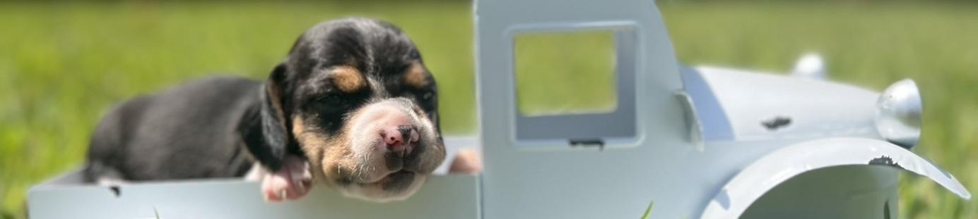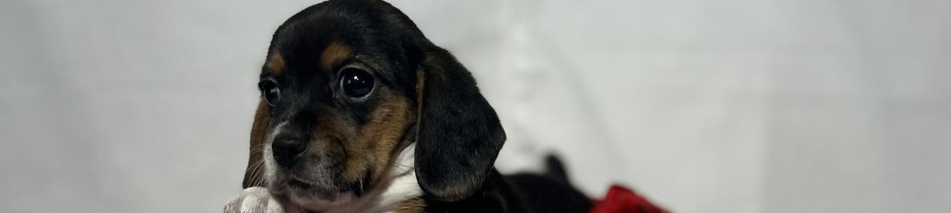 Our Beagle puppies include black tan and white, lemon and white, and brown white and tan. Colors will vary depending on the parent dogs.