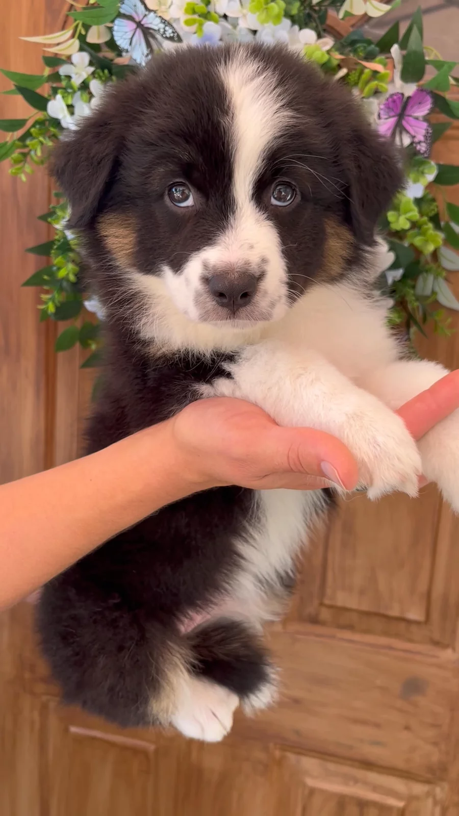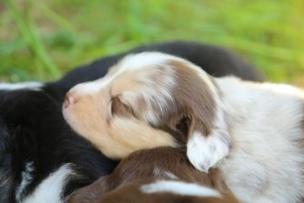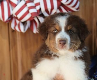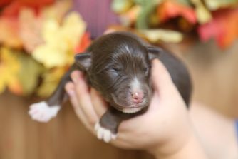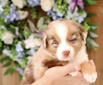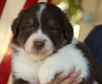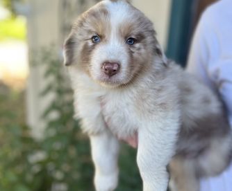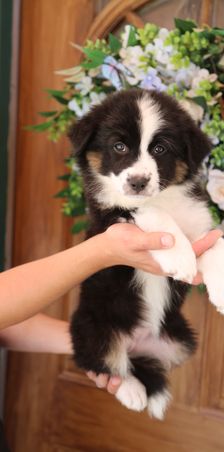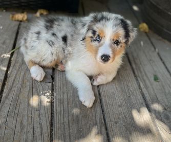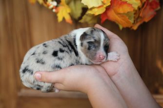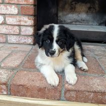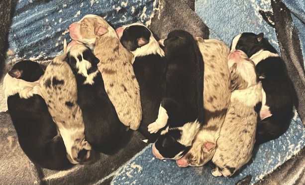 Our puppies include red merle, black tri-color, and red tri-color. Colors will vary depending on the parent dogs.