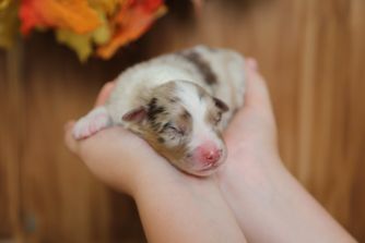 Rochelle was so wonderful and easy to work with. This pup is our 3rd Aussie and he is a gem. He had an amazing start with Rochelle and her family and came pretty much potty trained. Communication was fantastic and responsive. We are super happy!