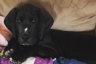 Our puppies include blue, harlequin, mantle, merle, and black. Colors will vary depending on the parent dogs.