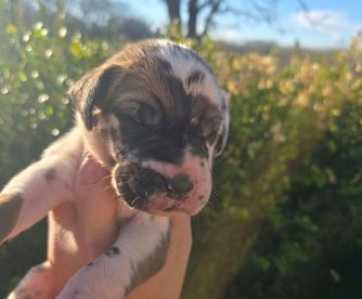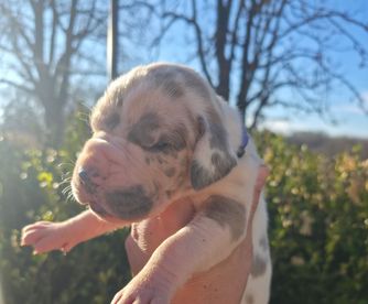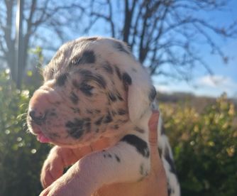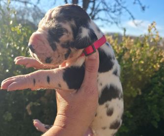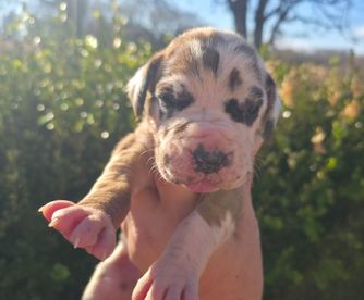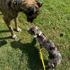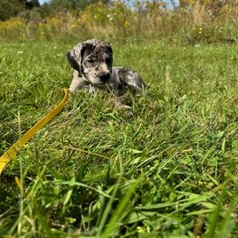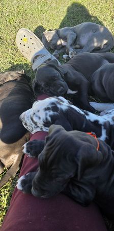 I've been wanting to leave a review for a while now; trying to find all the right words, but the truth is, there's just not enough good things I could possibly say about Jes, HCR, and her dogs/puppies (but I'll try). From the very first message, to texts back and forth after purchasing our puppy, she's been nothing but helpful. Quick to respond, answering every question and then some. Sending pictures, videos, health and development updates. My husband and I had lost our previous Dane (different breeder) due to complications of mega esophagus. We were heartbroken. When we decided it was time to add another Dane into our lives, we started researching and messaging several breeders near and far. We were very impressed with the ad/listing Jes had posted. After reaching out to her, we knew this was the breeder we wanted to work with, and I'm so glad we did! With the exception of our last Great Dane, who came from a local breeder, all of our other pets have been adopted from nearby shelters. We were a little apprehensive about buying a puppy several hours away, and unsure how the process of purchasing and pick-up worked. Jes made everything so easy, and helped us every step of the way. She was very accommodating, making sure she was available the day and time we could make the drive out there. When we first got there, we were greeted by several impressive dogs. It was clear they were all happy, and well taken care of; living their best lives. She was gracious enough to invite us into her home. Letting us meet her family, both human and dog. As for the puppy we brought home, I'm literally crying typing this review, thinking about how happy we are with her. We're so appreciative of all the care and hard work that went into the breeding of and upbringing of these puppies. Making sure they're healthy, well adjusted, and giving them such a great headstart on life in preparation to go to their forever homes. Even our vet, who sees a lot of dogs and puppies, couldn't stop talking about what a great example of this breed our puppy is, in both appearance and personality. We couldn't agree more. We're so happy with our puppy. If you're lucky enough to find yourself in the position to buy a dog from Jes, do it! You won't be disappointed. I can't recommend Jes and her HCR pups enough!