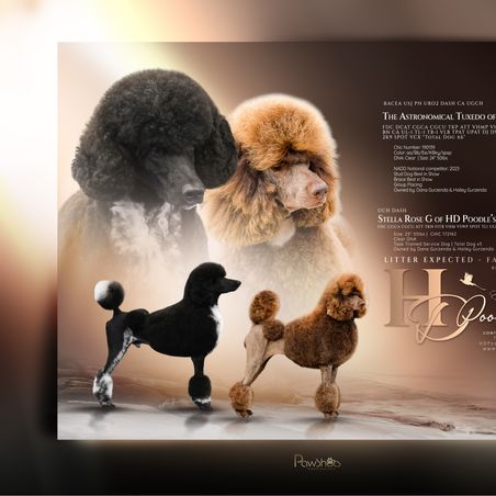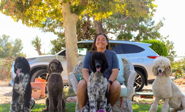 I'm Dana G., the breeder behind HD Poodles located in Hesperia, CA. Our program showcases breeding stock through jr handlers but also emphasizes comprehensive puppy development. From early training rooted in Puppy Culture and AVID dog methodologies to grooming, socialization, and water exposure, each step ensures our puppies thrive both in sports and loving homes.