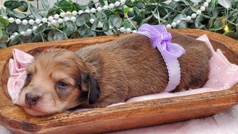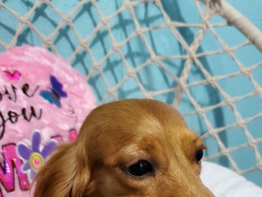 Butterfly is a female Dachshund. Carefully selected as a great representative of her breed, Robert and Emma decided to make her part of their program. Robert and Emma has passed Good Dog’s screening process, which involved a review of their breeding practices, environment, and the mental and physical health of their dogs.