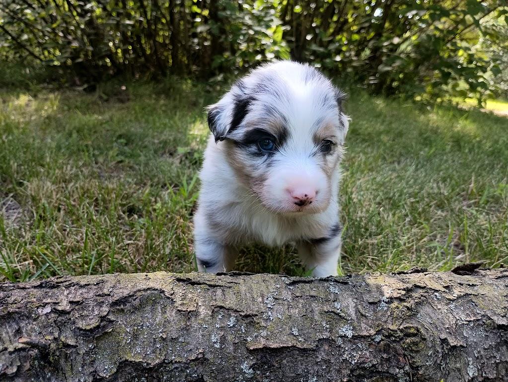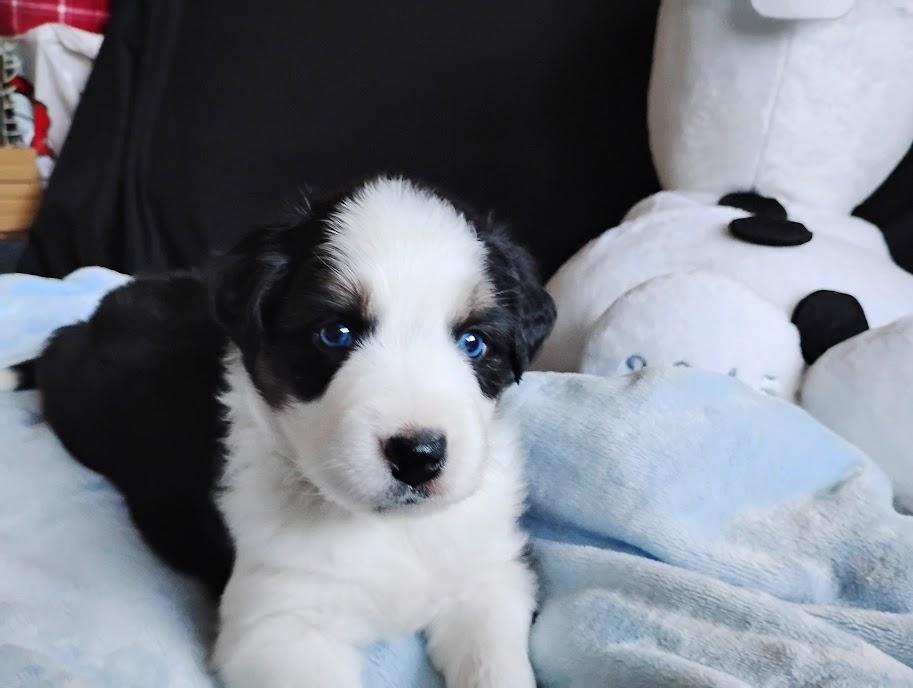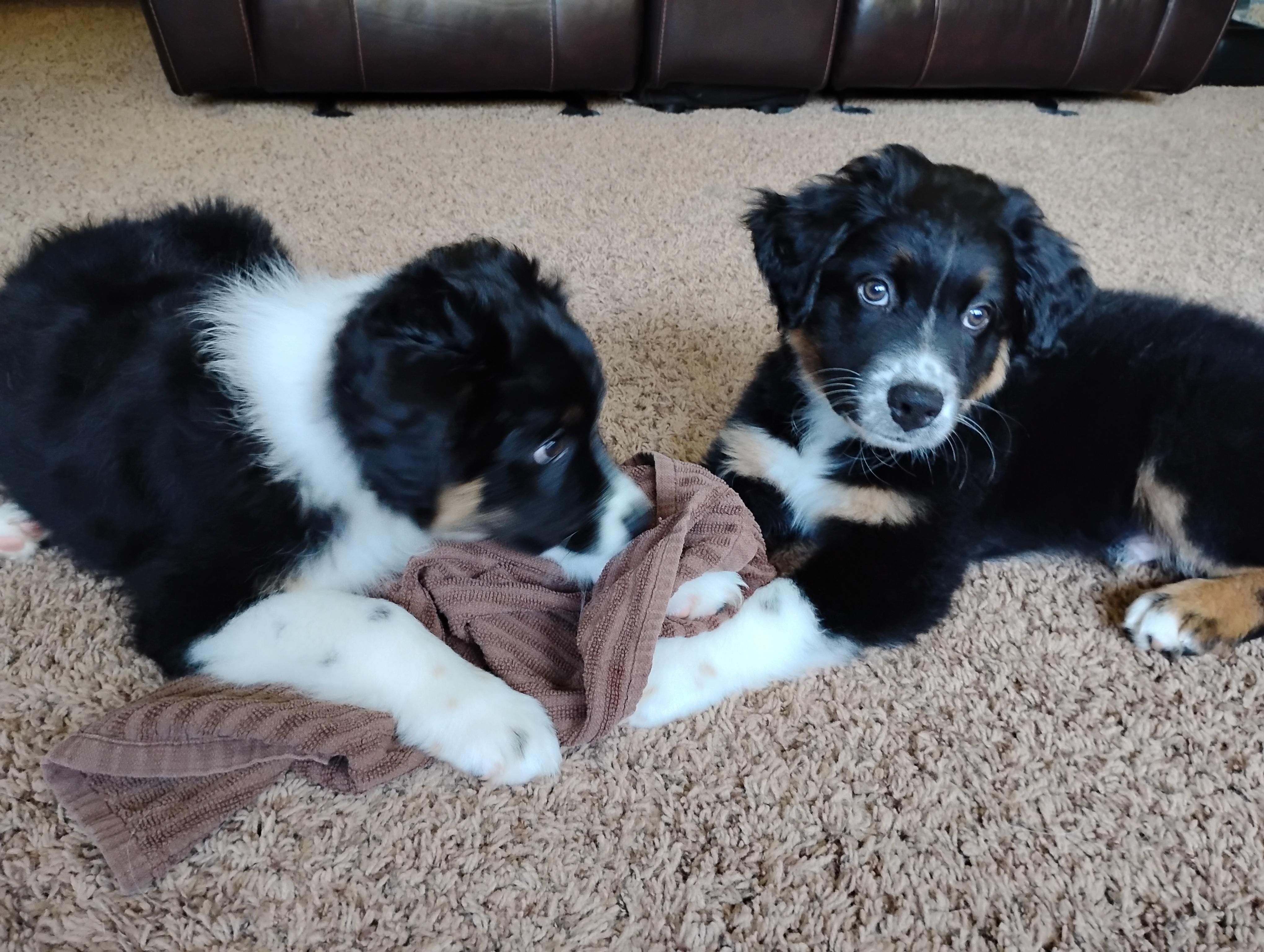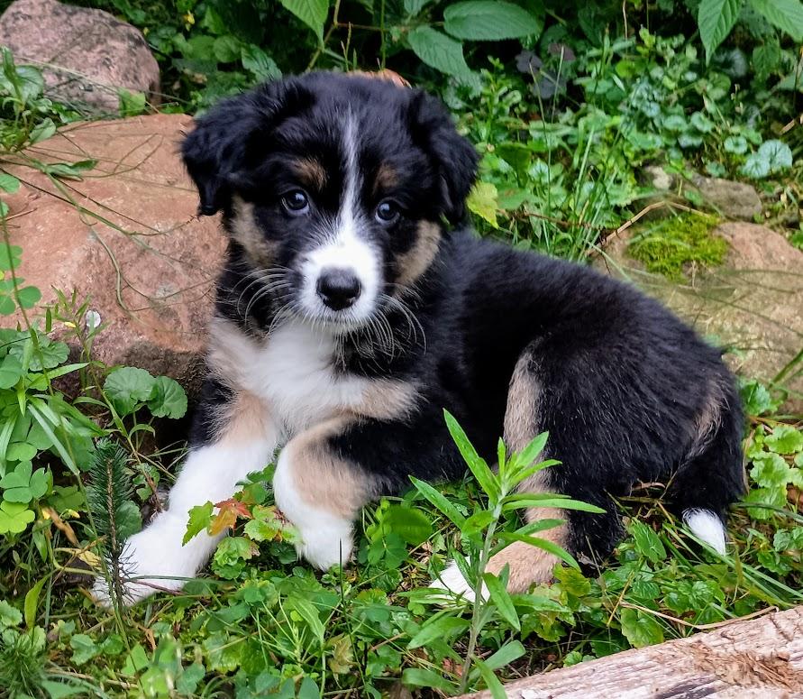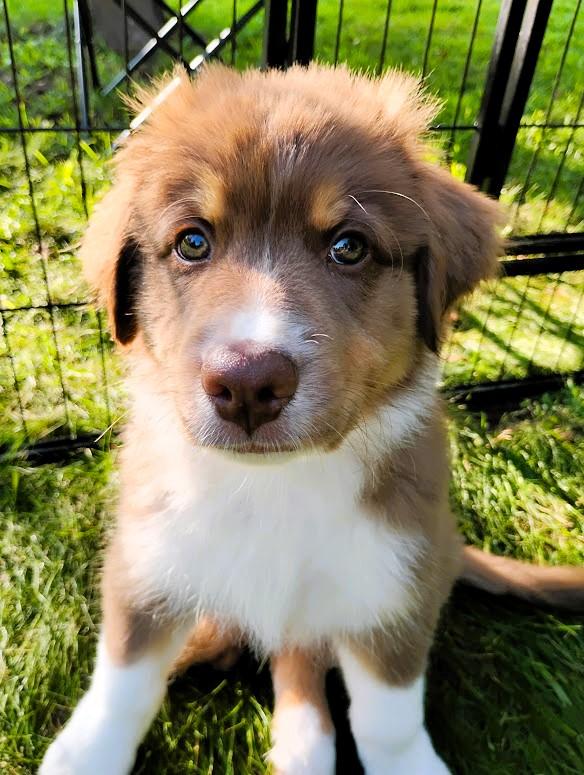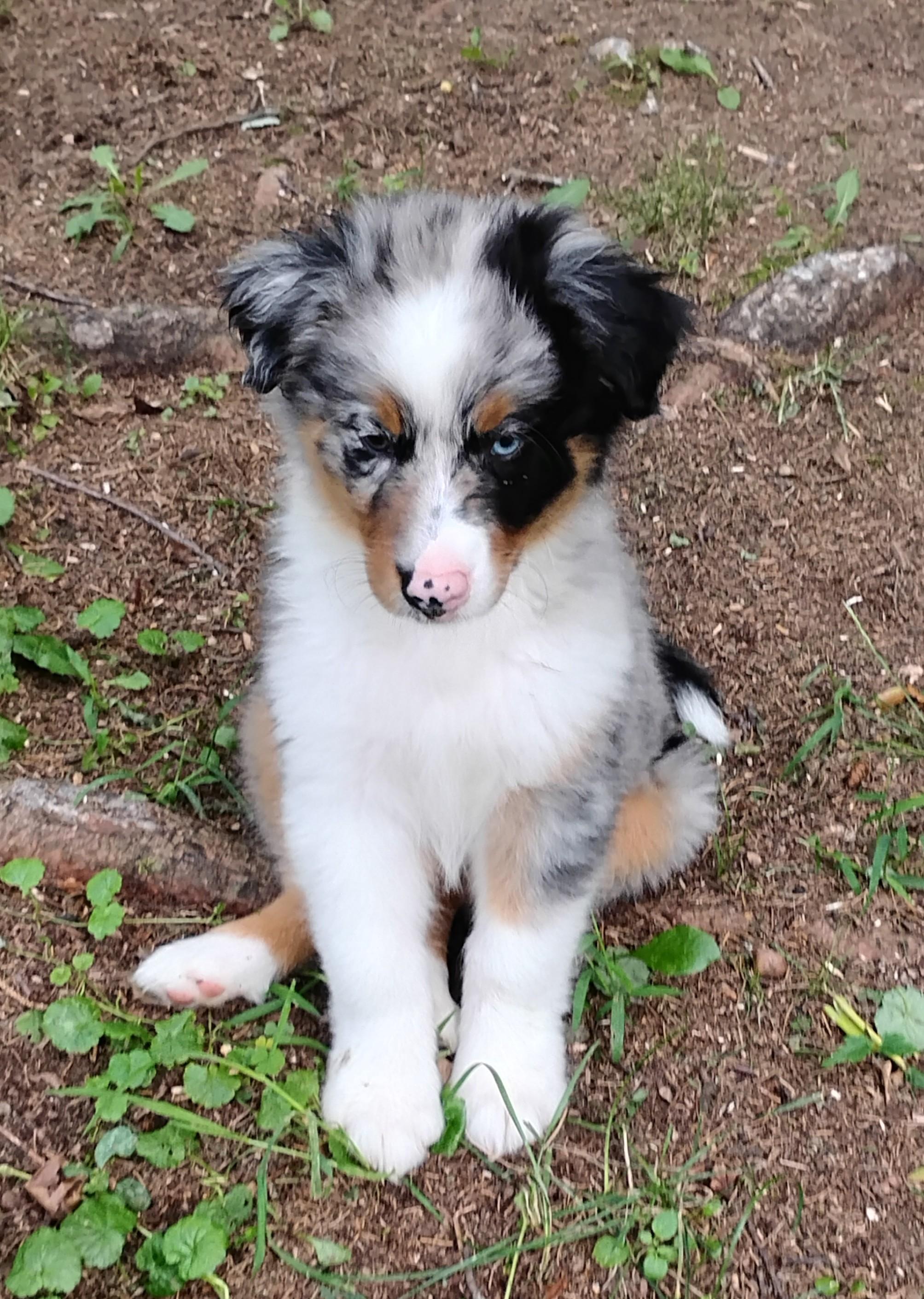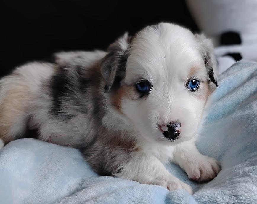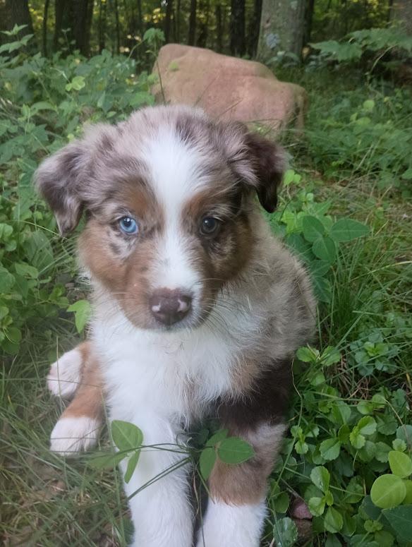 Our puppies include red merle, blue merle, black tri-color, and red tri-color. Colors will vary depending on the parent dogs.