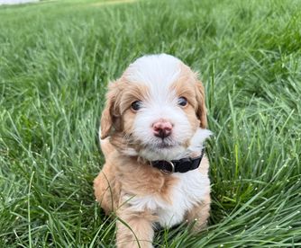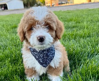Our Bernedoodle puppies include mini and medium sizes. Aussiedoodle puppies include toy and mini sizes. Sizes will vary depending on the parent dogs.
