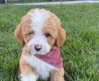Mitzi is a female Aussiedoodle. Carefully selected as a great representative of her breed, Laura decided to make her part of their program. Laura has passed Good Dog’s screening process, which involved a review of their breeding practices, environment, and the mental and physical health of their dogs.