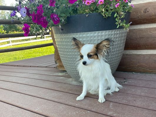 Linus is a male Papillon. Carefully selected as a great representative of his breed, Andrea decided to make him part of their program. Andrea has passed Good Dog’s screening process, which involved a review of their breeding practices, environment, and the mental and physical health of their dogs.