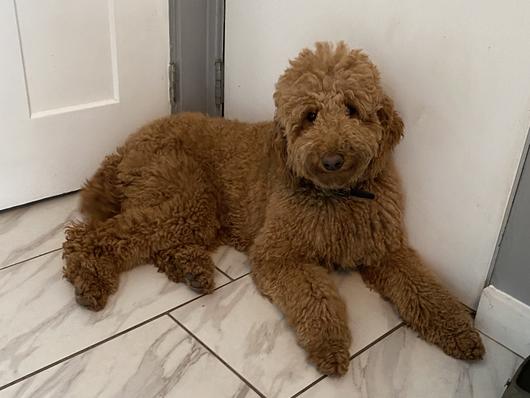 Moe is a male Goldendoodle. Carefully selected as a great representative of his breed, Kelli decided to make him part of their program. Kelli has passed Good Dog’s screening process, which involved a review of their breeding practices, environment, and the mental and physical health of their dogs.