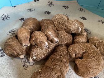 Our puppies include cream, apricot, and red. Colors will vary depending on the parent dogs.