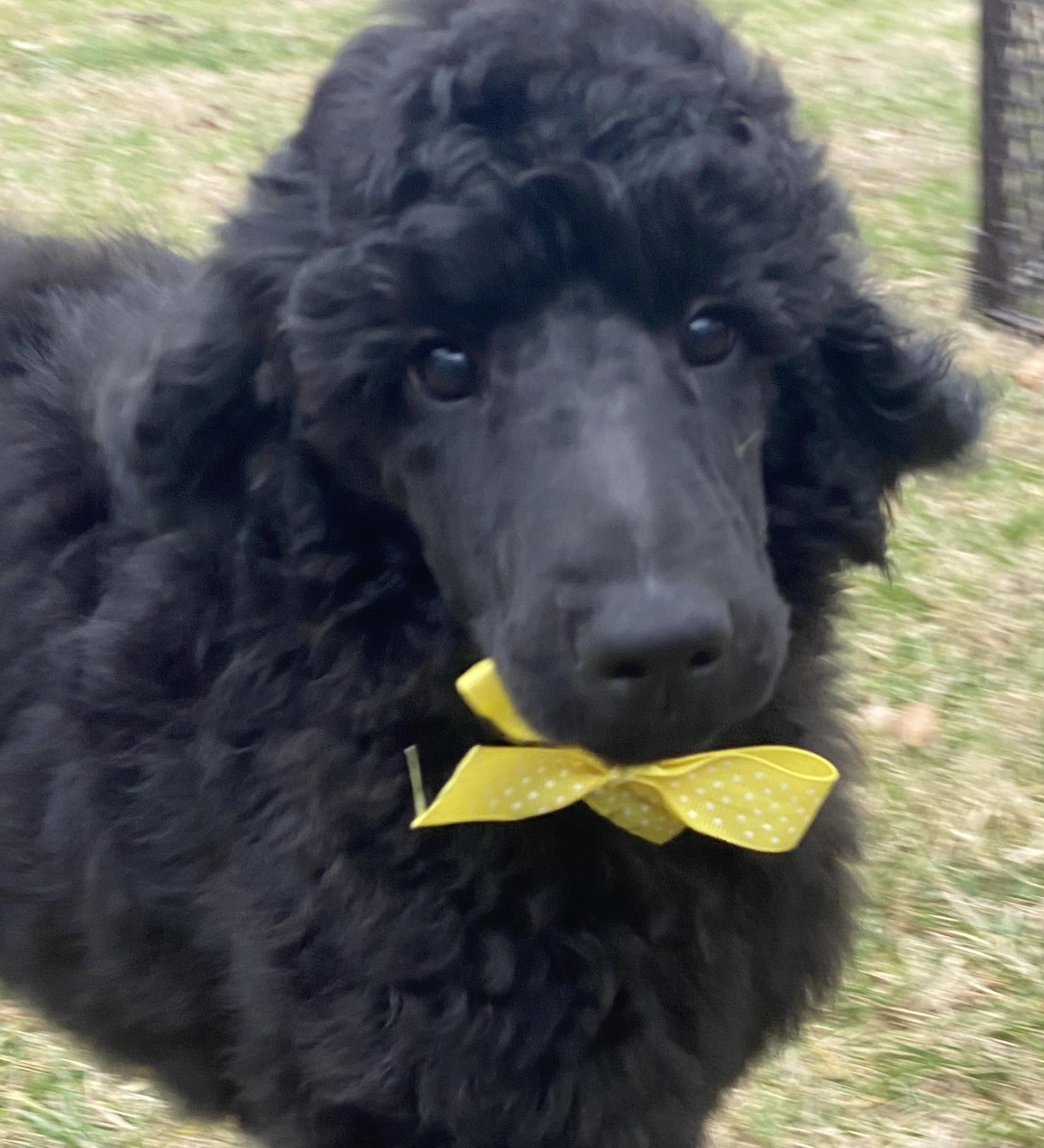 My first standard Poodle was Bonnie. I begged and begged my parents for a dog. I poured through dog breed books, read as much as a 10 year old could about dogs and begged some more. With 5 children in the family you would think that would be enough companionship, but yet I wanted a dog. Finally, we added Bonnie a black standard poodle to the family. My Father, a veterinarian had met several in his practice and admired their intelligence and calm demeanor. My mother had asthma and it was decided a poodle was the best low allergy dog for our family. Bonnie was our faithful companion, we explored the trails in the woods behind our house, she played in the creek with us, sat with us when we watched t.v. or chased the ball when we played tennis or softball. Bonnie was always there. That is what I want to give to other families. A standard poodle to be their faithful companion, someone who is always by your side, someone who loves you unconditionally.