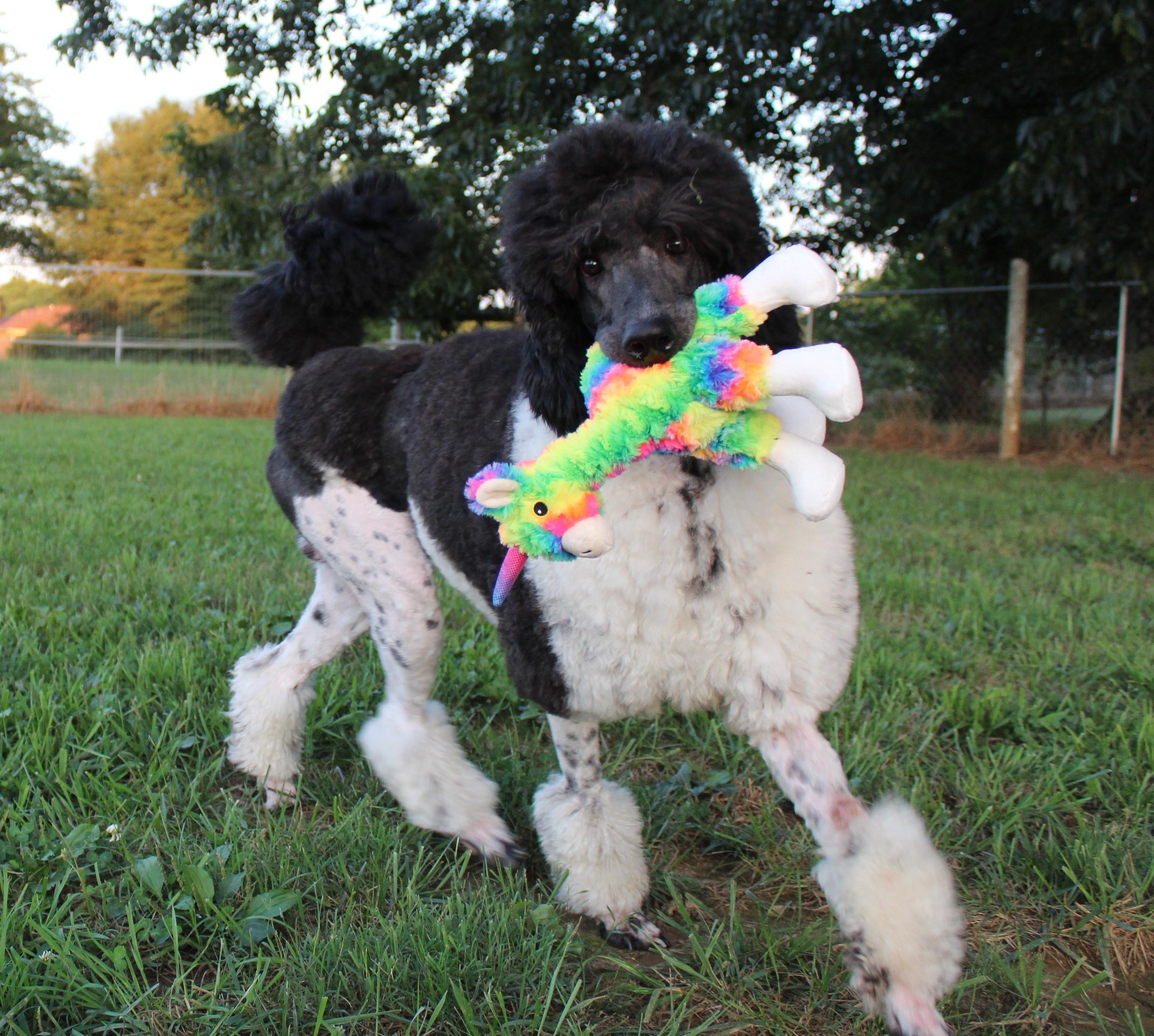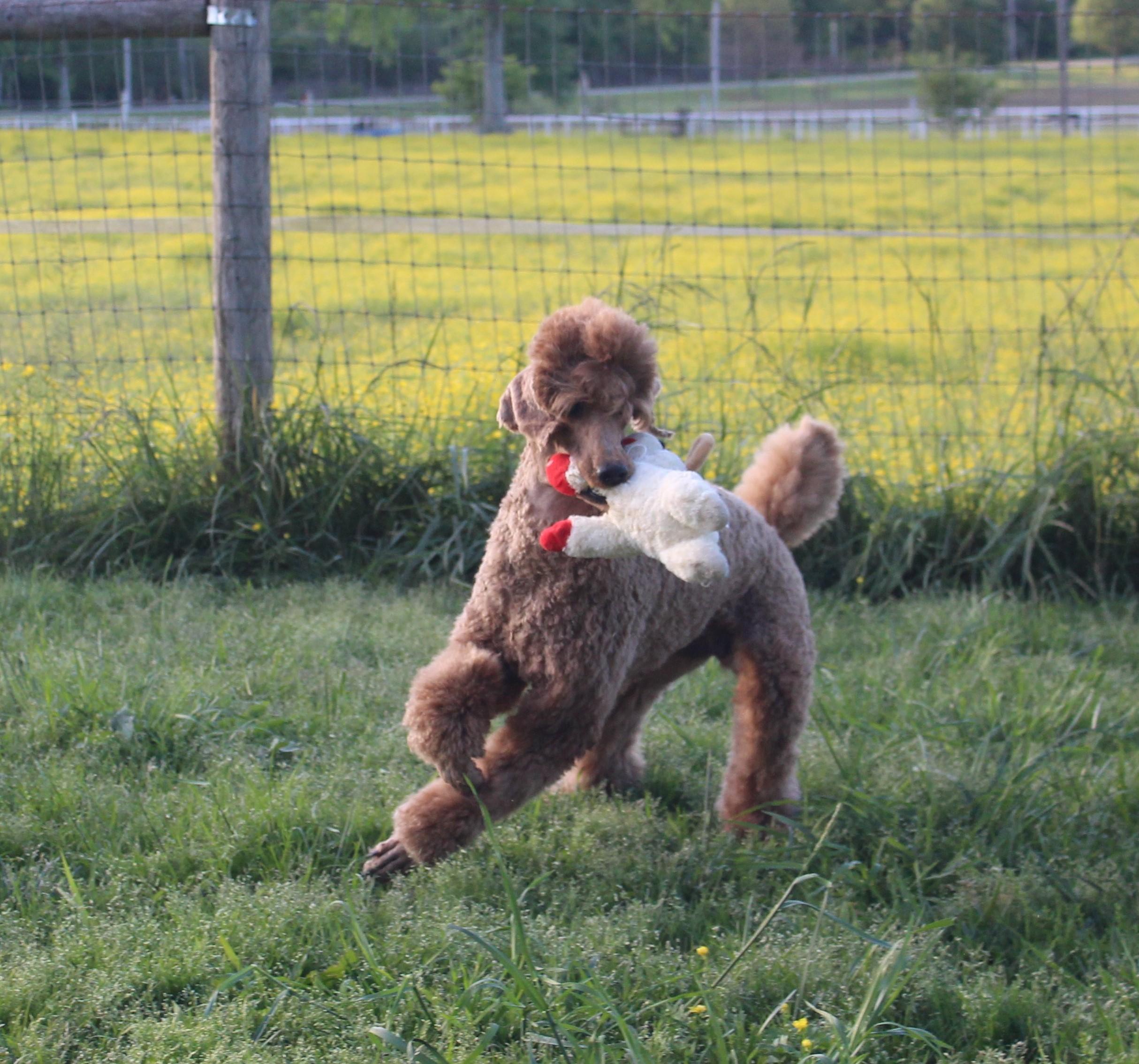 Our standard poodles are family. They live in our home, attend a variety of training classes, love to travel and explore the world with their family, and bring joy to us everyday! Some poodles love to play in the water and some love to dig holes and become swamp puppies in the mud! Our higher energy dogs love agility, obedience, fetch, and other athletic activities. A few of our dogs are couch potatoes and prefer to spend the day on the sofa or relaxing in the shade of the trees. We strive to breed healthy, solid temperament, friendly dogs.