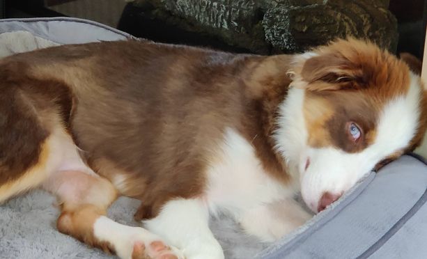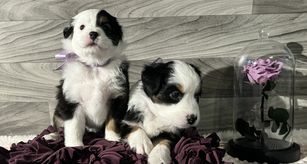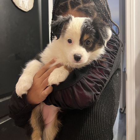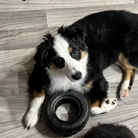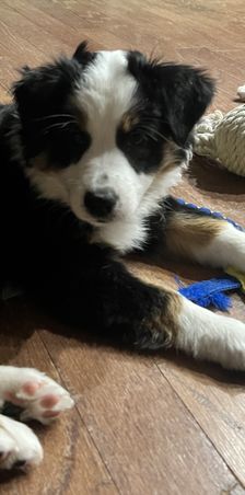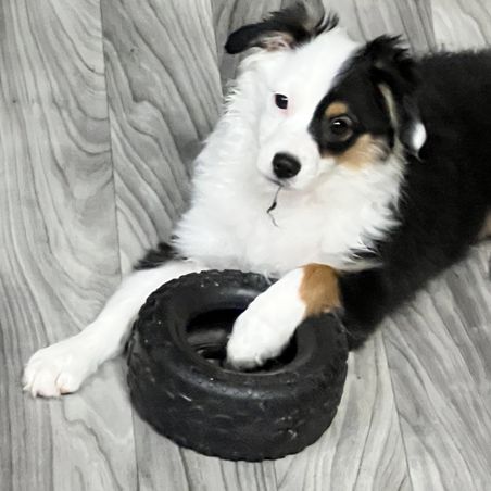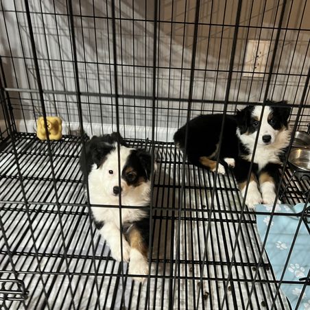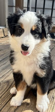 Our puppies include blue merle, black tri-color, and red tri-color. Colors will vary depending on the parent dogs.