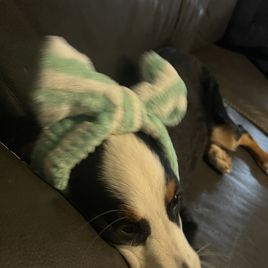 The experience I had with this breeder was exceptional! It exceeded my expectations and far more. I have had Gertrude for almost a month now, and she was hand-delivered to me personally by the Tammi herself. I was so concerned, reluctant and hesitant to get a puppy, being that I am an older person. And after the passing of my husband, Joey, I just did not think that I would be able to put a smile back on my face. Ever since this little puppy has come into my life, she has bought happiness and joy back to me! She’s my best friend and my companion. As Tammi had promised me, she was definitely a pup that was more laid-back and relaxed. It was truly the perfect match for me. I was also worried that this pup would get too large for me to handle, but again with Tammi’s reassurance, she told me that this pup is expected to be a certain weight at her full grown size and it was true! Gertrude will be six months, I guess that’s considered full grown in two months and right now she’s about 22 pounds, so this falls perfectly in the estimated range that Tammi promised. Tammi seemed to be a very kind soul person, she spent time with me. She was patient. She answered all my questions. She reassured me and let me know that if I needed her she was only a text away, which she has proven. Potty training Gertrude was a breeze due to the fact that she had told me that she starts potty training her puppies from early. I truly am so happy.! This is a photo of Gertrude on our self-care day. Yes she even allows me to put a headband on her. I would highly recommend Tammi and anyone that wanted to get a puppy from a loving kind place, it seems like her pups reflect her personality. They are very loved and cared for, and that is what I’ve been given with Gertrude. Thank you again so much, Tammi!!!!