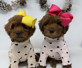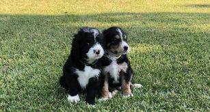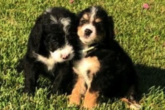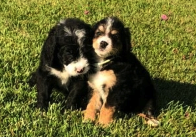 Our Goldendoodle puppies include apricot and red. Bernedoodle puppies include sable, black and white, and tri-color. Colors will vary depending on the parent dogs.