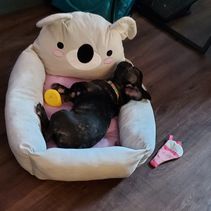 Holly was lovely to work with, giving us useful information and tips when we first picked up our puppy, and — given that our family had pre-arranged travel that had been timed a couple of weeks after our pickup — she offered to board our pup for a time while we were away, so we didn’t have to put our pup in a kennel before she was even eligible for all her shots. (We loved that while Holly had the pup back, she would send us pictures and videos of her, making us feel great that she was having a great time)! We’ve struck a nice relationship with Holly and are happy with her support throughout the process.