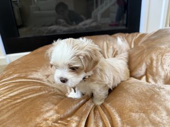 We are so happy with our new Lhasa Apso puppy, which we have named Holly, an apt choice for the Christmas season. We recently lost our beloved Lhasa Apso mix dog, and in our grief, we started looking for puppies for sale. We feel blessed to have found Steve and Marie. They were responsive and sensitive to our needs and concerns. Living locally, we were able to pick up our puppy from Steve and Marie’s kennel. While there, it was easy to see that the puppies were loved and well cared for. Steve and Marie were very caring and informative throughout the process. They made sure we understood all the necessary information about vaccinations, puppy care, and insurance. They even sent us home with an amazing personalized Lhasa Apso "go bag" filled with almost everything we needed to get started with our new fur baby. The whole experience truly brought joy to our holiday season. Our Holly jolly season!