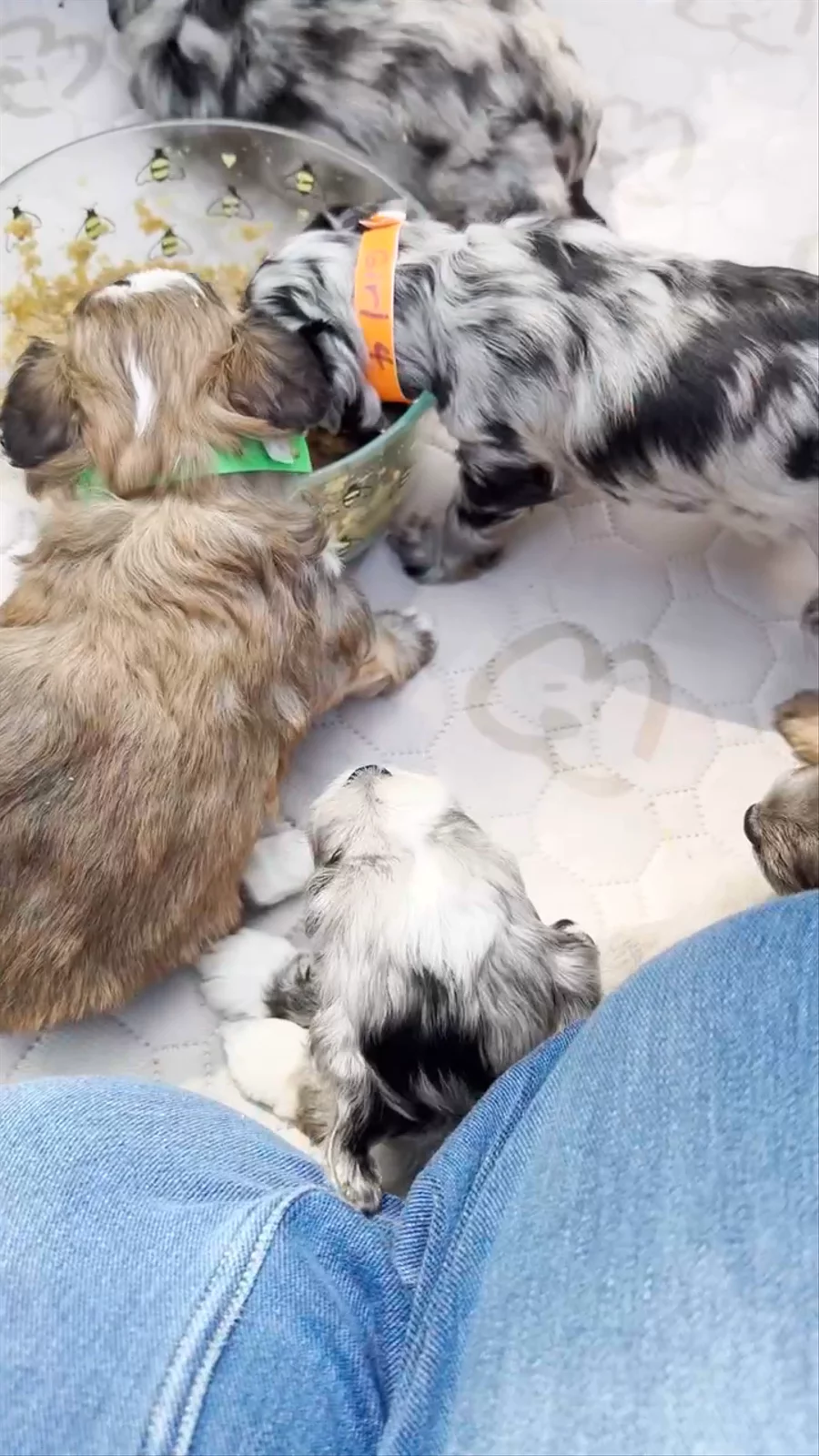 Starting on puppy mash 🙂 Pups are becoming very social and their little personalities are starting to show .