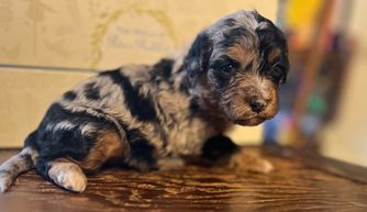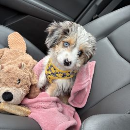 I got my mini Aussie Doodle from Doug and Cathy, and the entire experience was wonderful from start to finish. Their communication was great throughout the process—I especially appreciated the regular updates and photos, which made the wait so much more exciting and reassuring. You can tell they genuinely care about their pups and the families they go to. I absolutely recommend them to anyone looking for a well-loved and well-raised puppy!