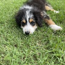 Our Aussiedoodle puppies include sable, blue merle, red merle, black tri-color, and red tri-color. Australian Shepherd puppies include blue merle and black tri-color. Colors will vary depending on the parent dogs.