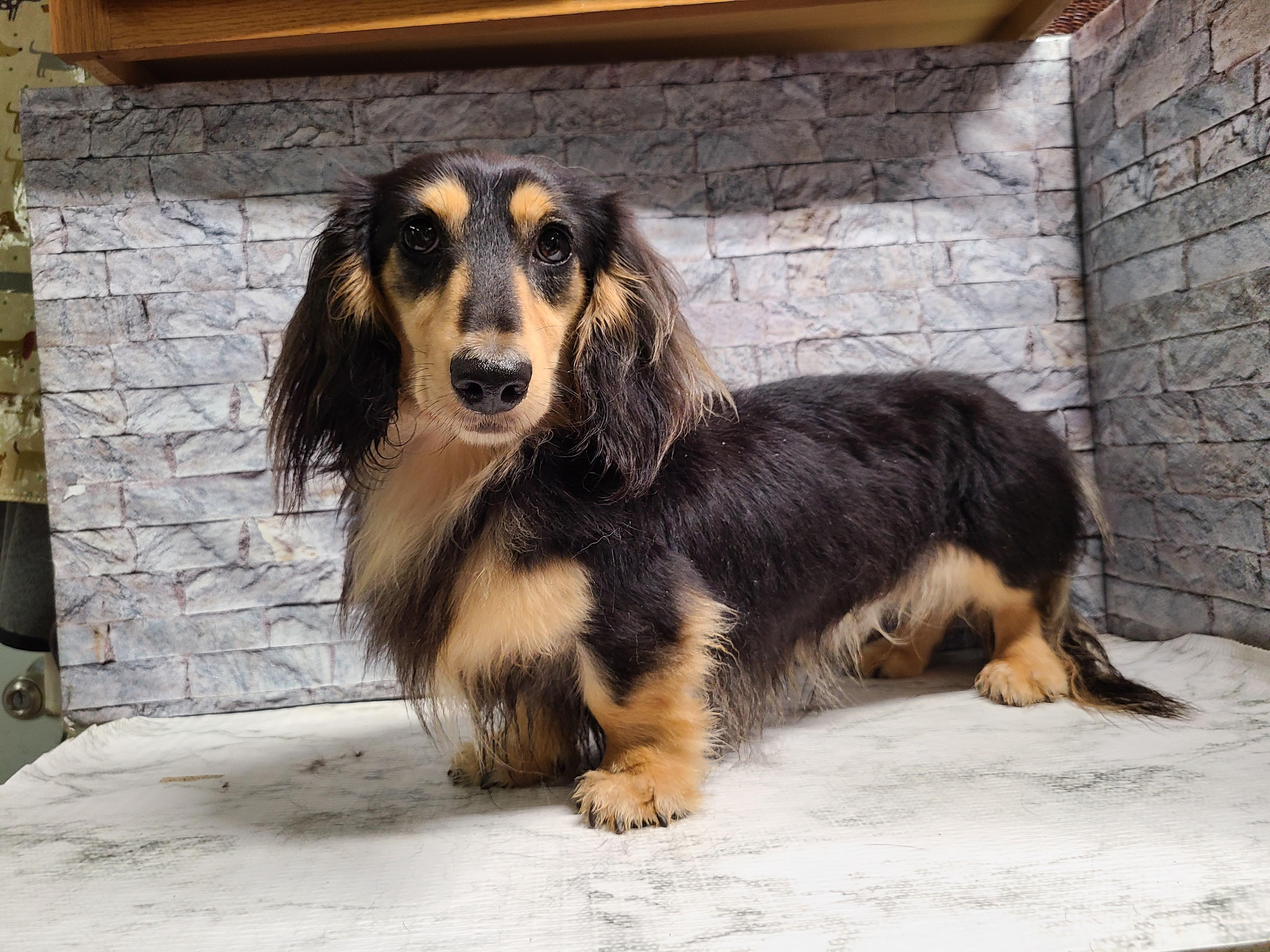 JESSA is a female Dachshund. Carefully selected as a great representative of her breed, Reba decided to make her part of their program. Reba has passed Good Dog’s screening process, which involved a review of their breeding practices, environment, and the mental and physical health of their dogs.