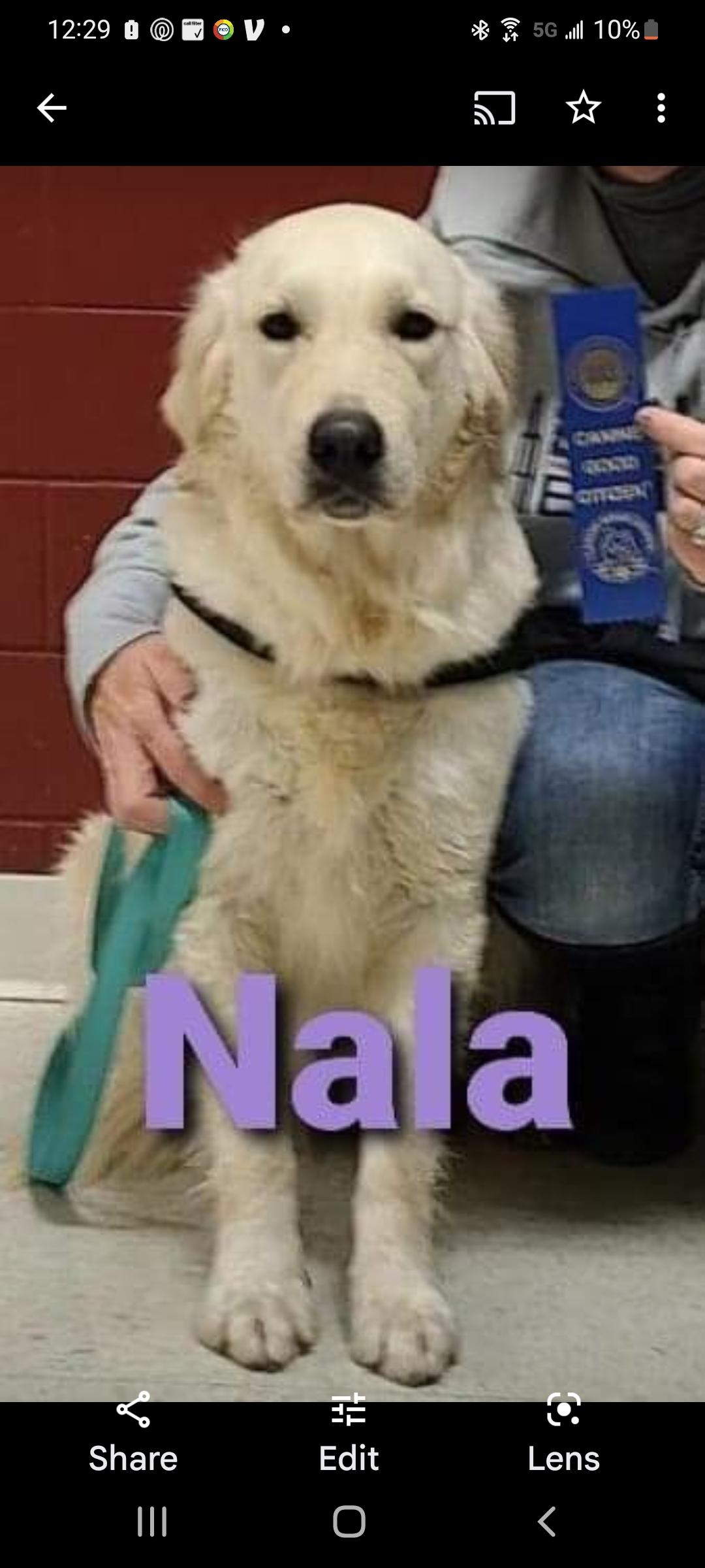 Nala is a female Golden Retriever. Carefully selected as a great representative of her breed, "Abby" Billie decided to make her part of their program. "Abby" Billie has passed Good Dog’s screening process, which involved a review of their breeding practices, environment, and the mental and physical health of their dogs.
