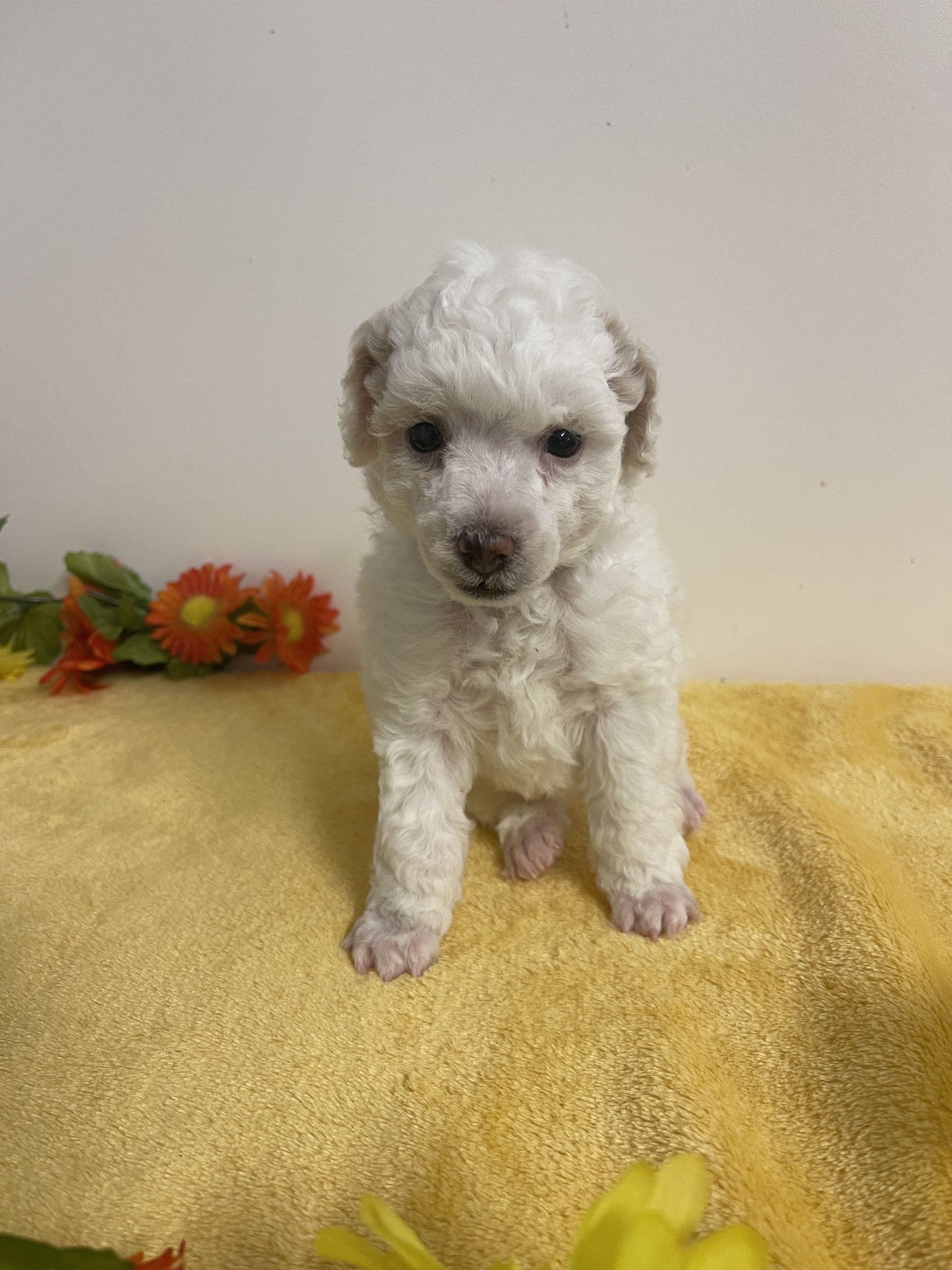 Poodle puppies are toy size. Sizes will vary depending on the parent dogs.