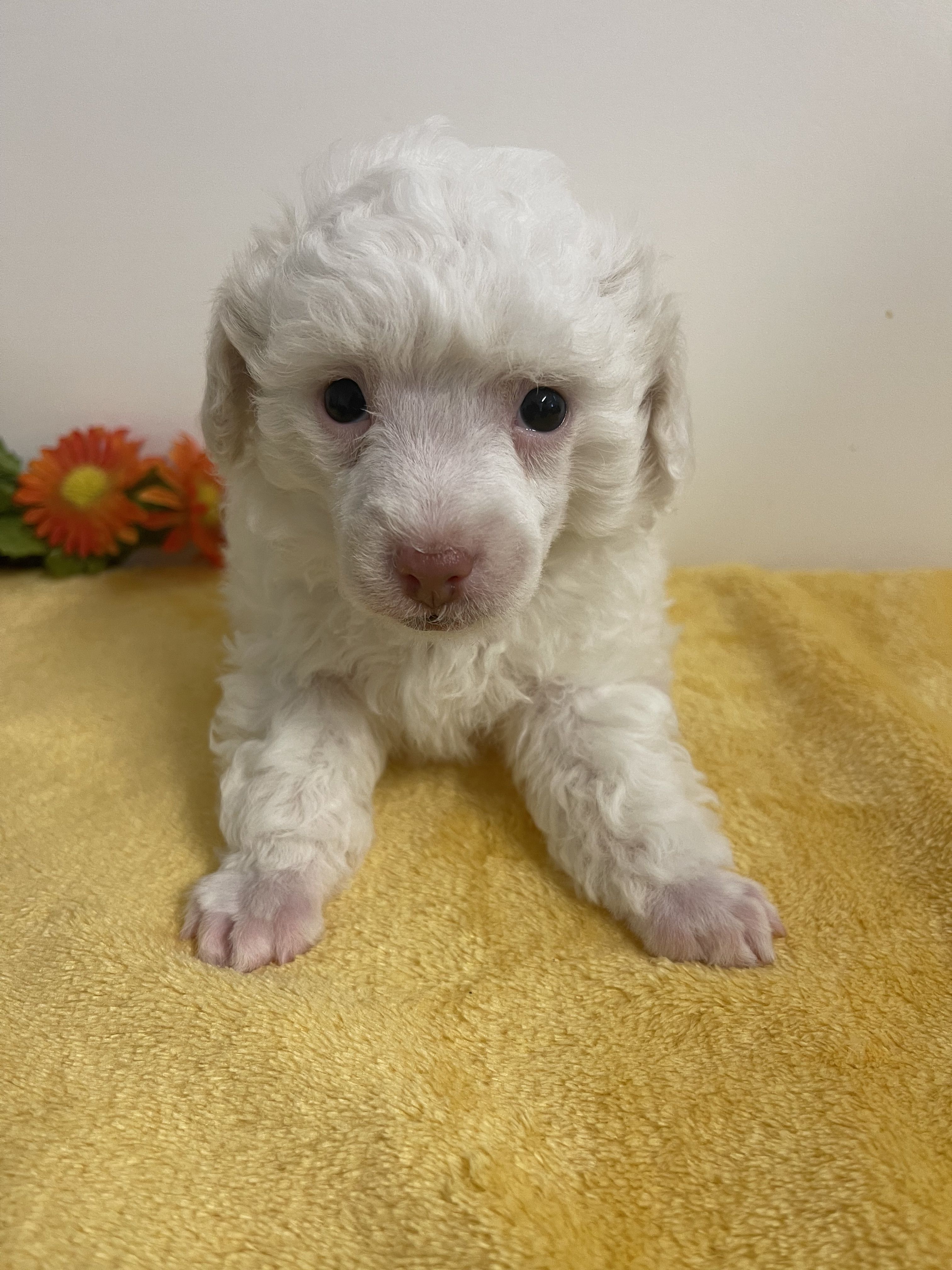 Our Pomeranian puppies include cream, black, and cream sable. Yorkshire Terrier puppies are black and tan. Poodle puppies are white. Biewer Terrier puppies are black tan and white. Colors will vary depending on the parent dogs.