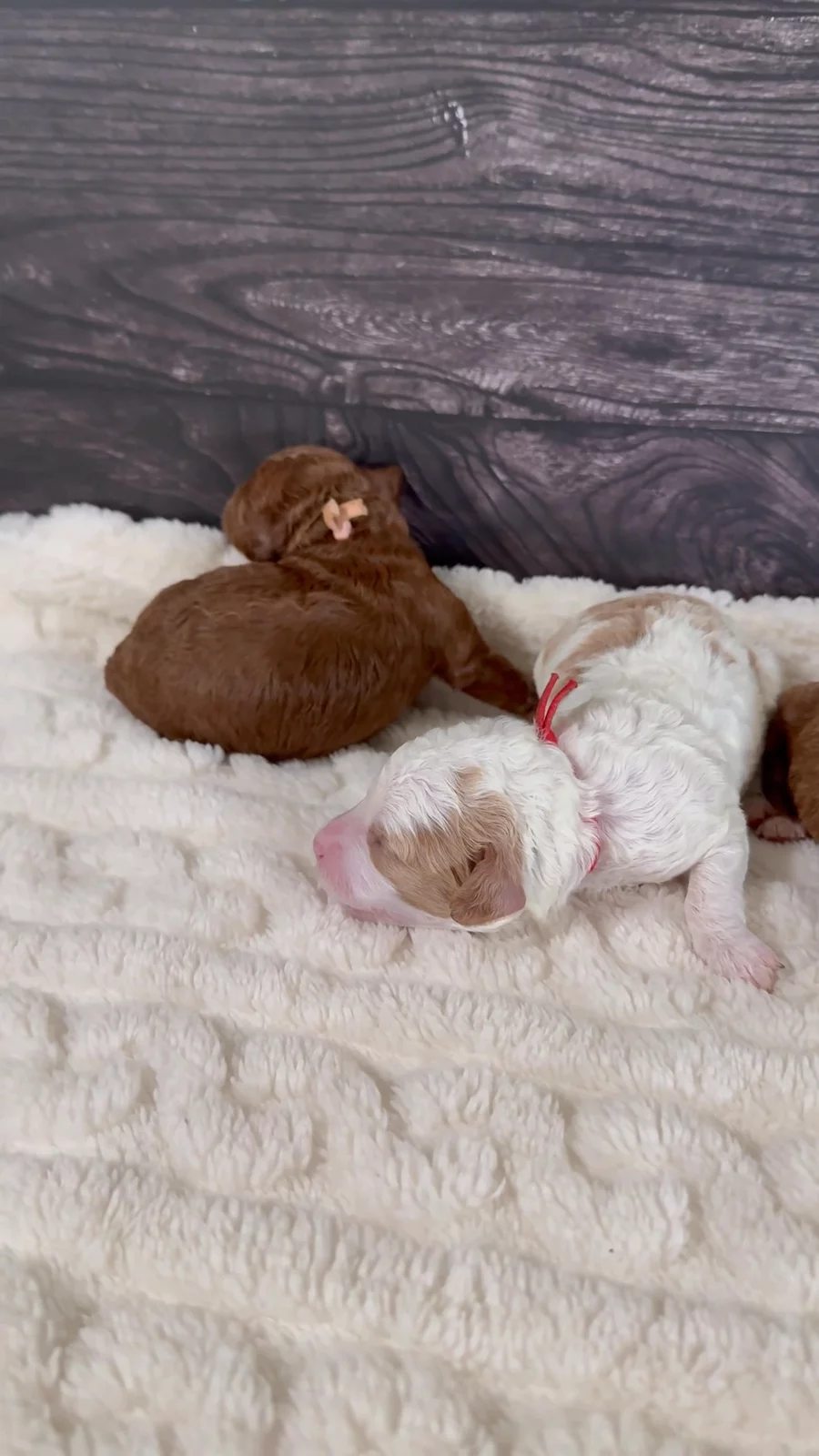 Our Goldendoodle puppies include apricot, red, and parti. Cavapoo puppies include tri-color, red, black and white, and apricot. Colors will vary depending on the parent dogs.