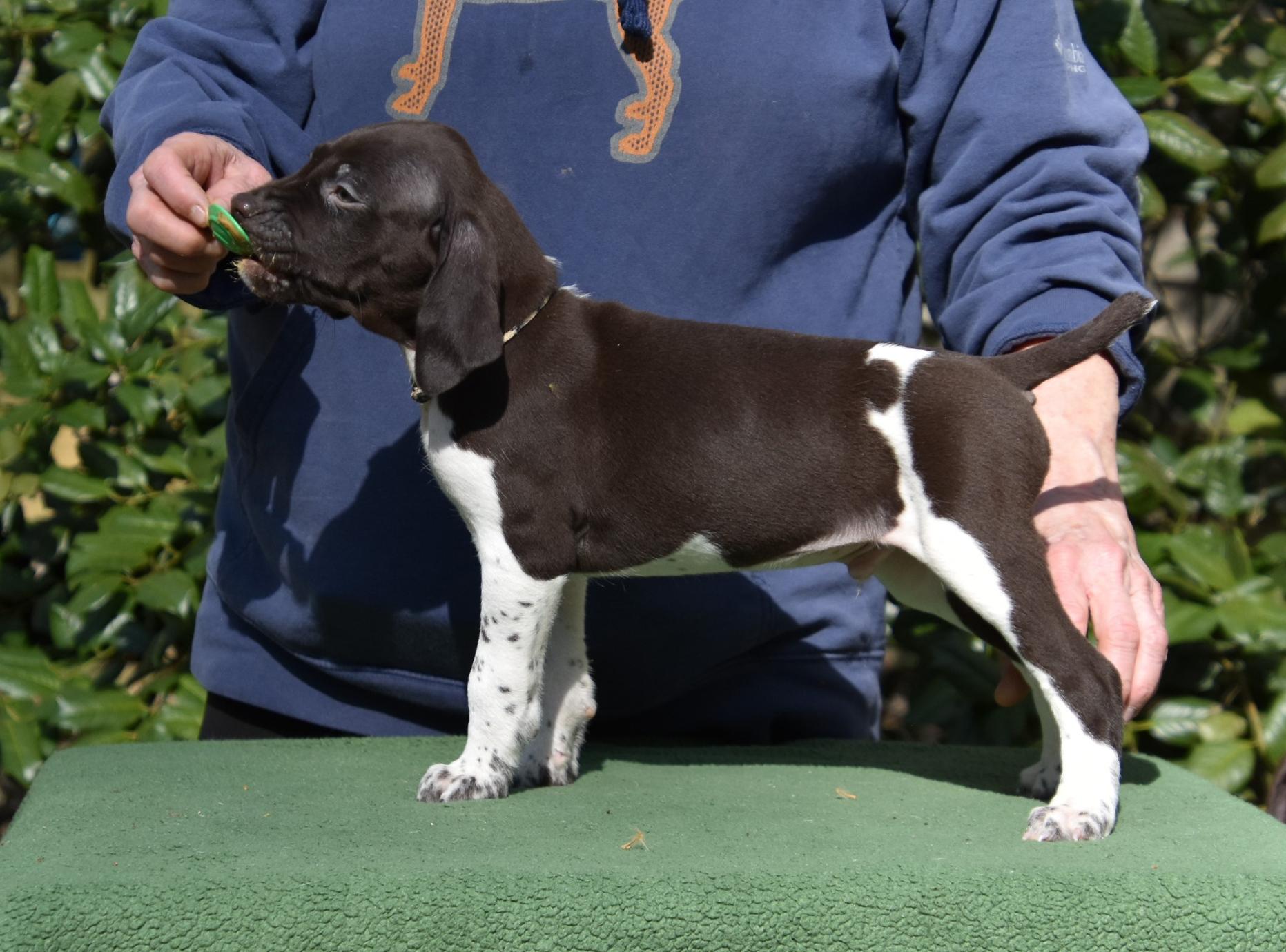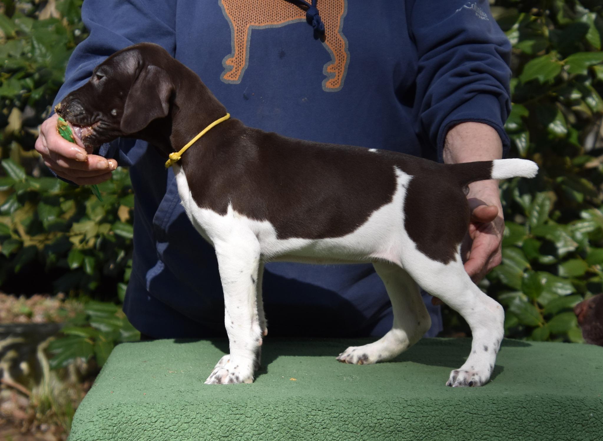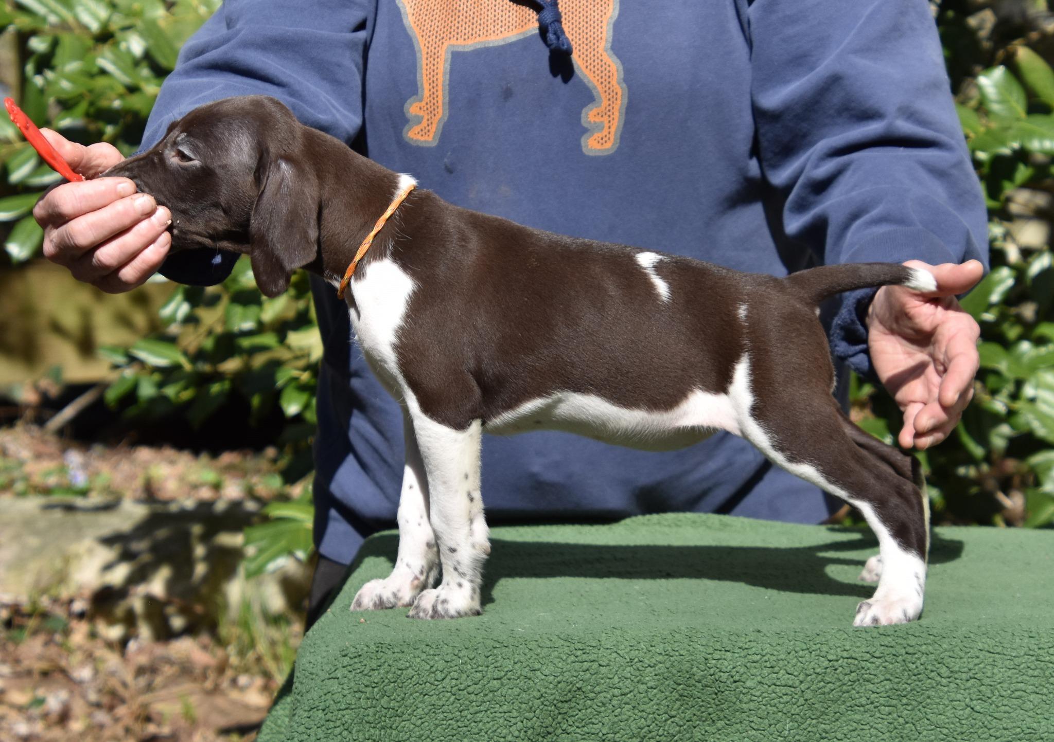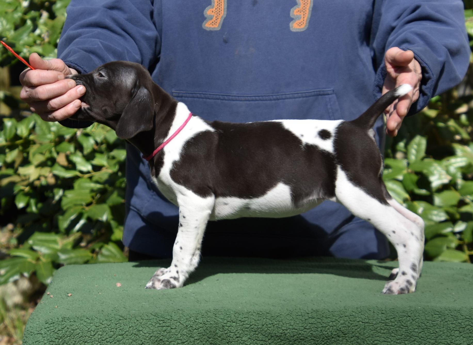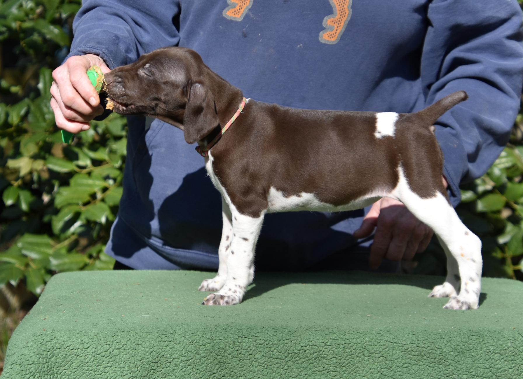 Our puppies are liver and white. Colors will vary depending on the parent dogs.