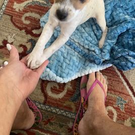 Hi, my name is Mary. I bought Spot now called Bella. Heather is a very responsible breeder and the app good dog was so easy. Heather has helped me with potty training. Bella is a beautiful smooth coat. Parsons Jack Russell. What a sweet sweet baby.
